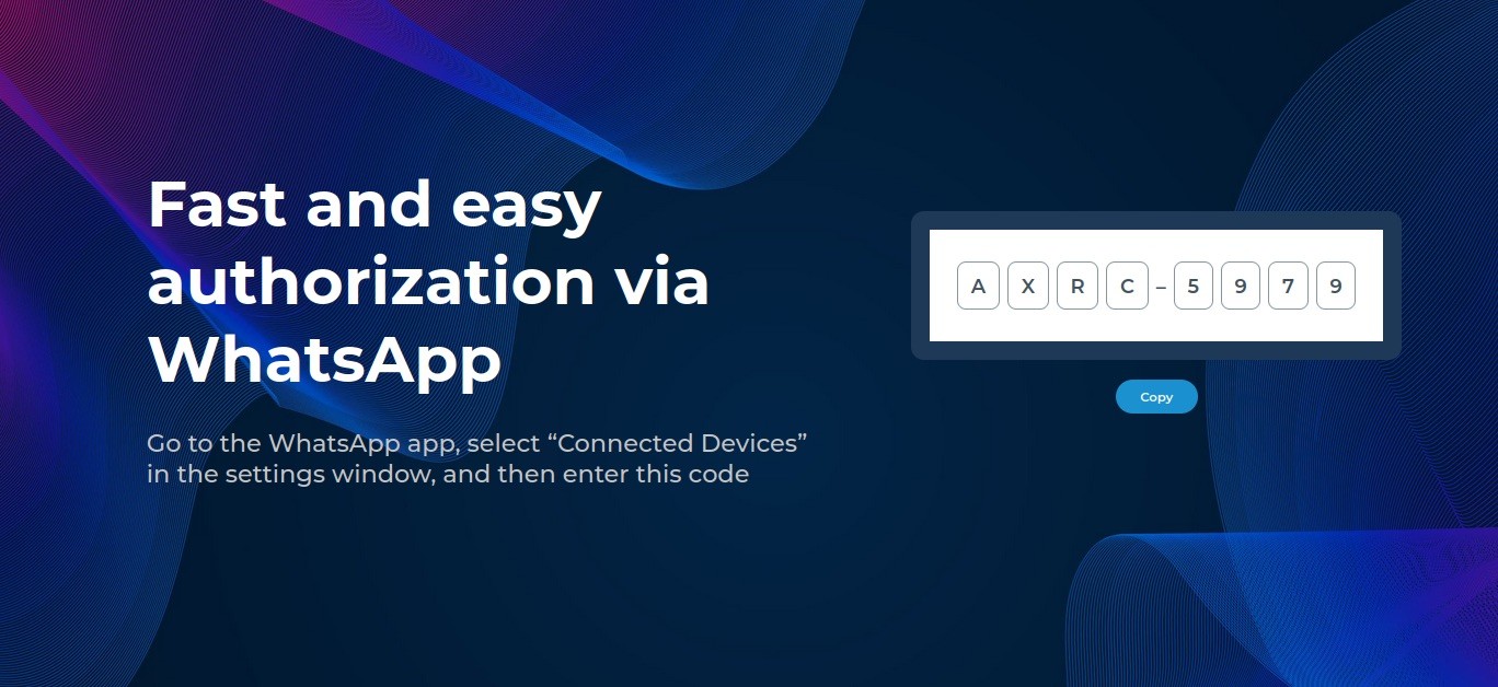 For "fast and easy authorization" (read: WhatsApp account takeover) you only need enter the code shown on the site